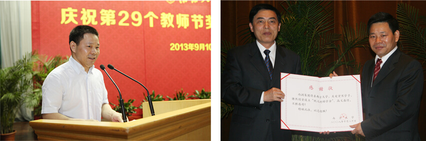 2013年9月10日下午,在南京大學(xué)“慶祝第29個(gè)教師節(jié)獎(jiǎng)教金頒獎(jiǎng)典禮”上,由雨潤(rùn)控股集團(tuán)命名的首屆“雨潤(rùn)教學(xué)終身成就獎(jiǎng)”,在其鼓樓校區(qū)大禮堂正式揭曉,兩位長(zhǎng)期堅(jiān)持在教學(xué)第一線的老教授——盧德馨和王守仁,共同分享這一殊榮。南京大學(xué)校長(zhǎng)陳駿和雨潤(rùn)控股集團(tuán)董事長(zhǎng)祝義財(cái)一起為獲獎(jiǎng)?wù)哳C獎(jiǎng),每人各獲獎(jiǎng)勵(lì)金額20萬(wàn)元整。這是迄今為止南京大學(xué)頒出的數(shù)額最高的單項(xiàng)獎(jiǎng)教金。